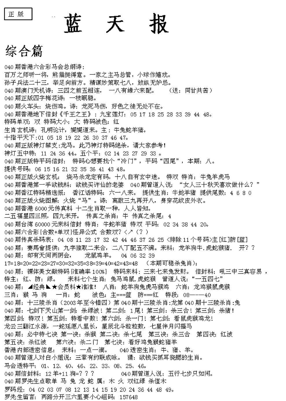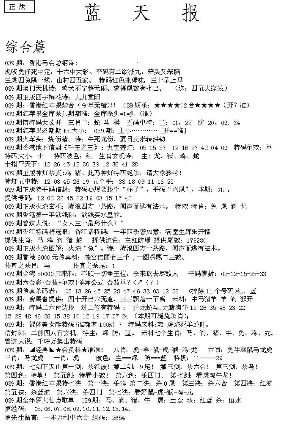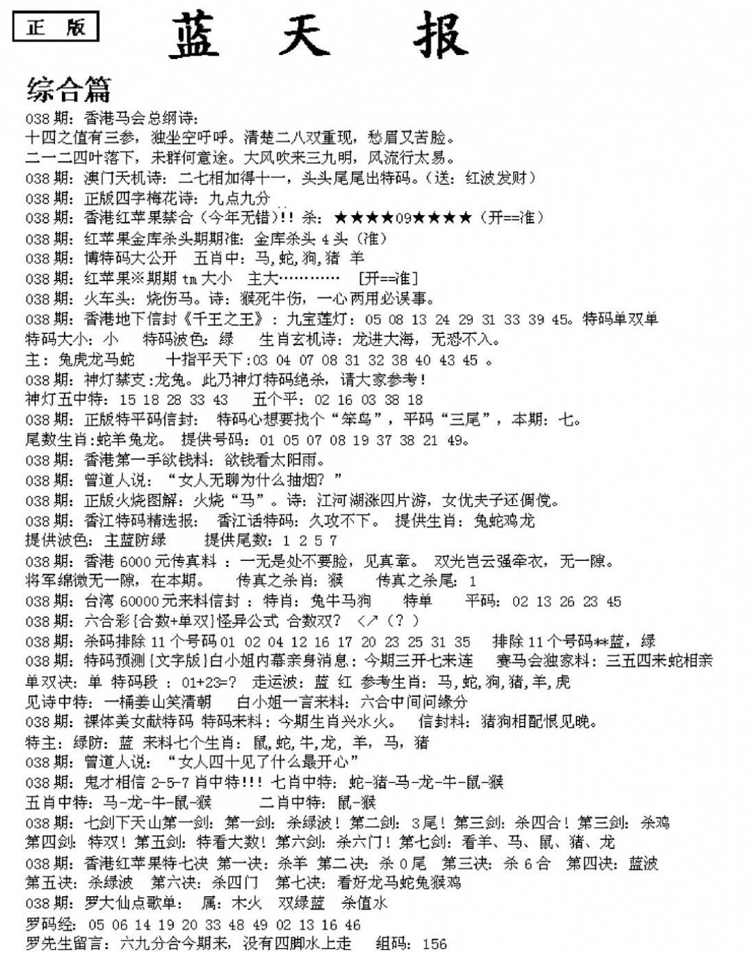 老版天机报