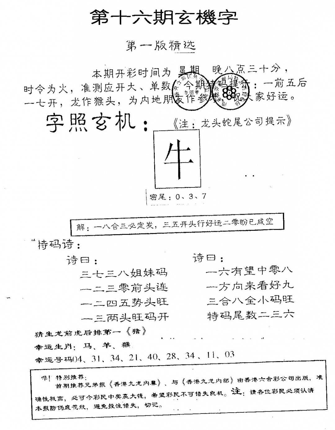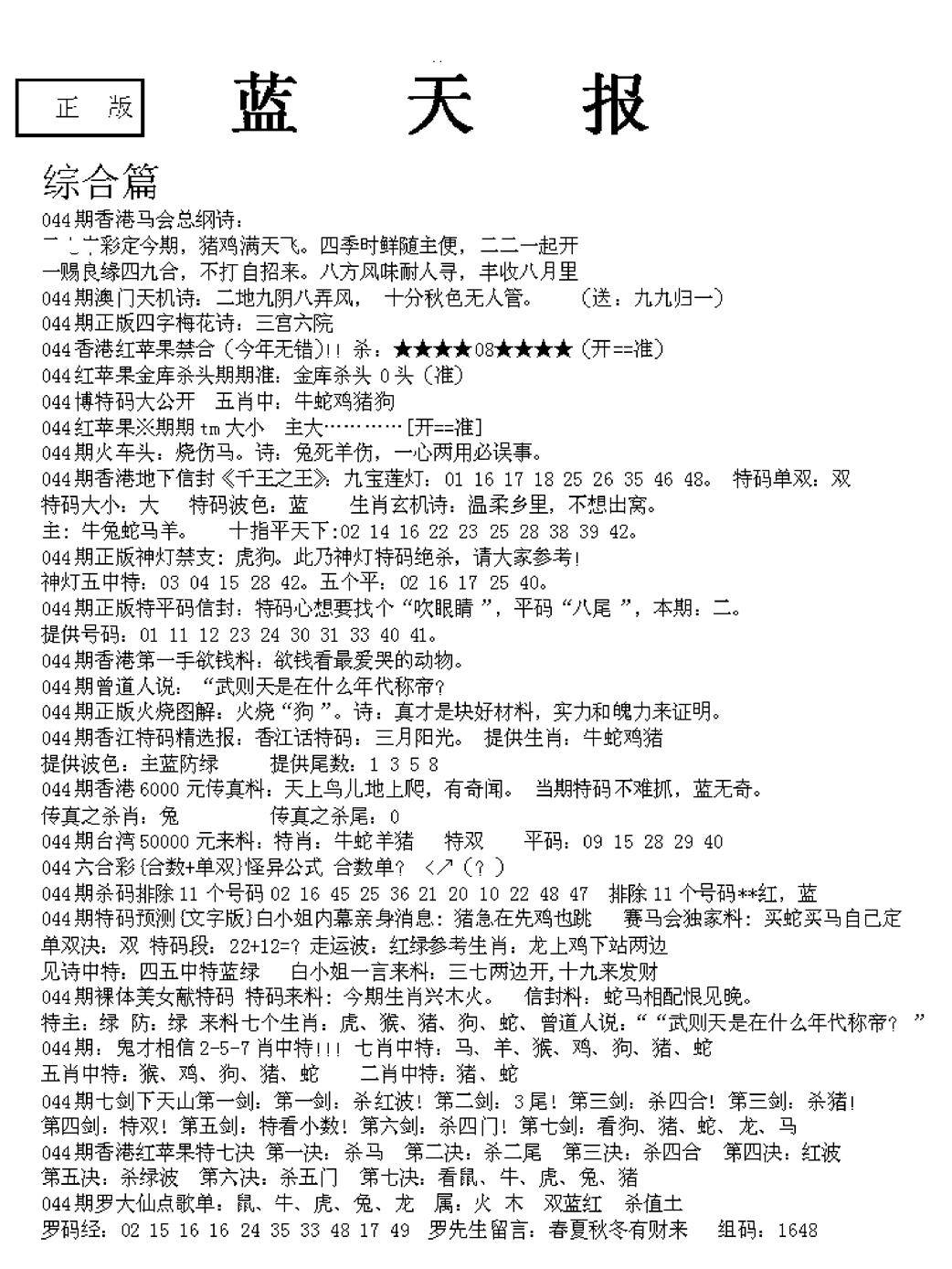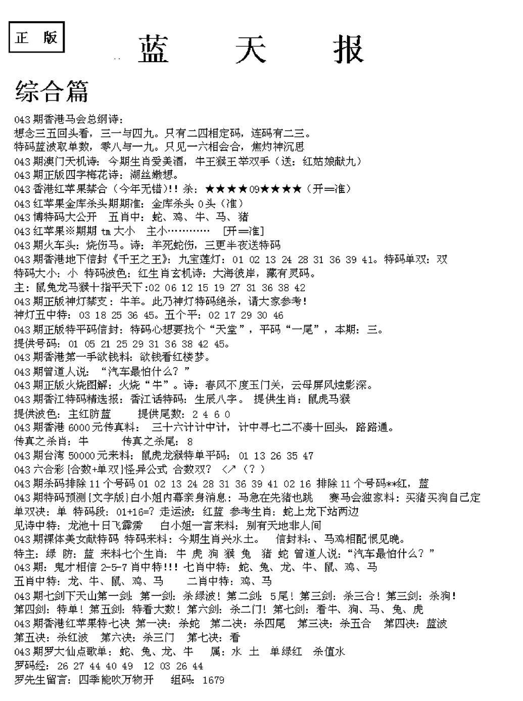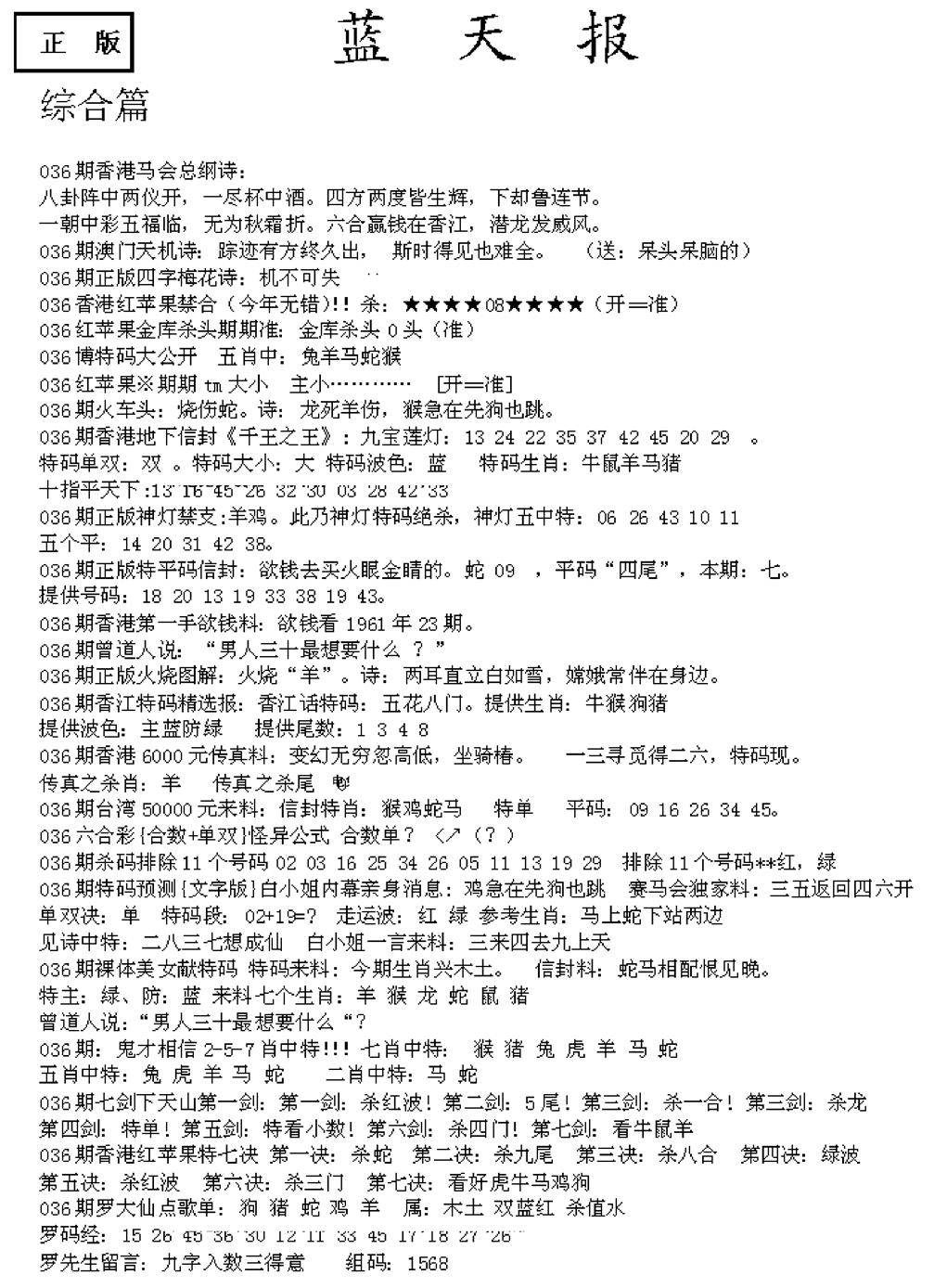 老版天机报