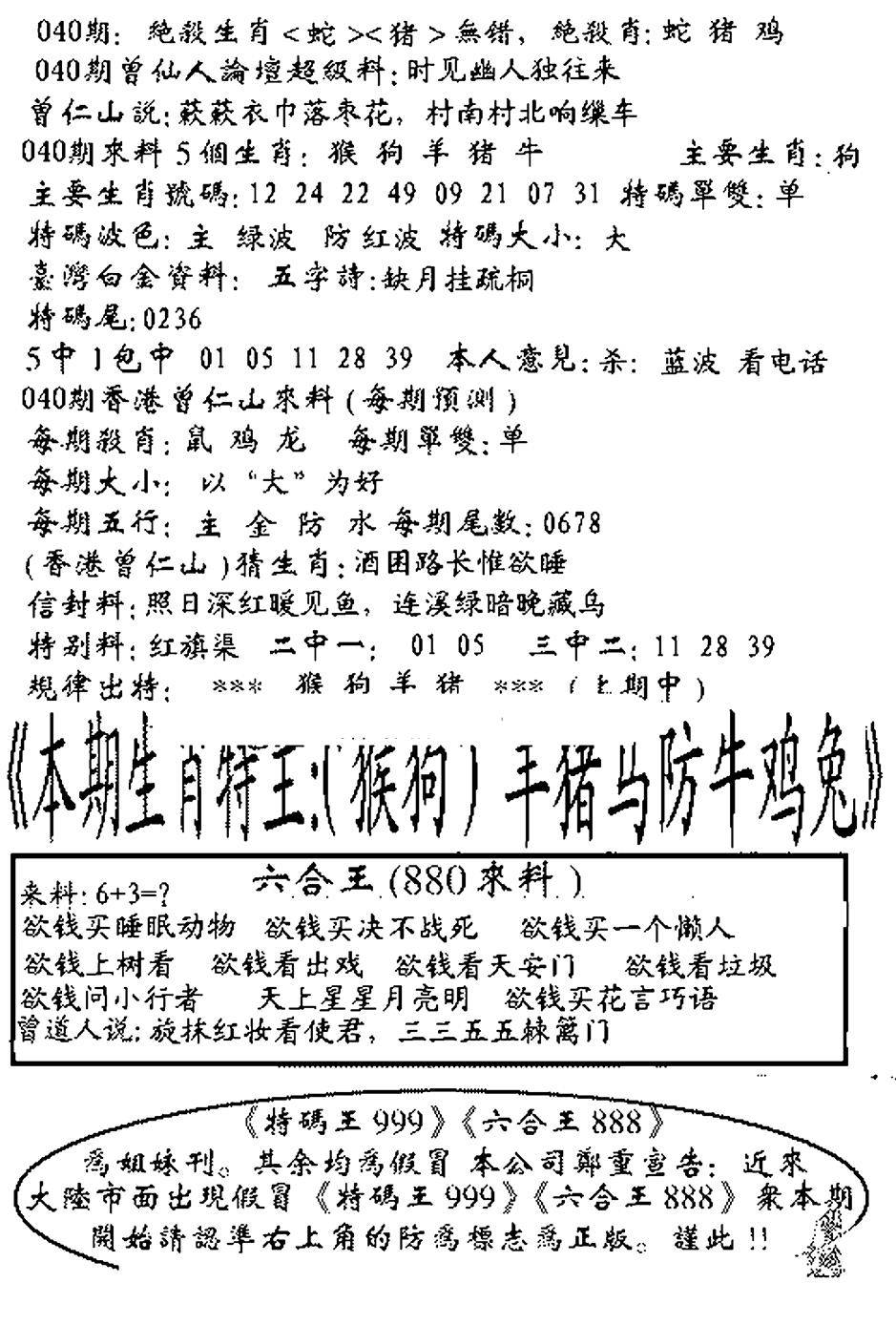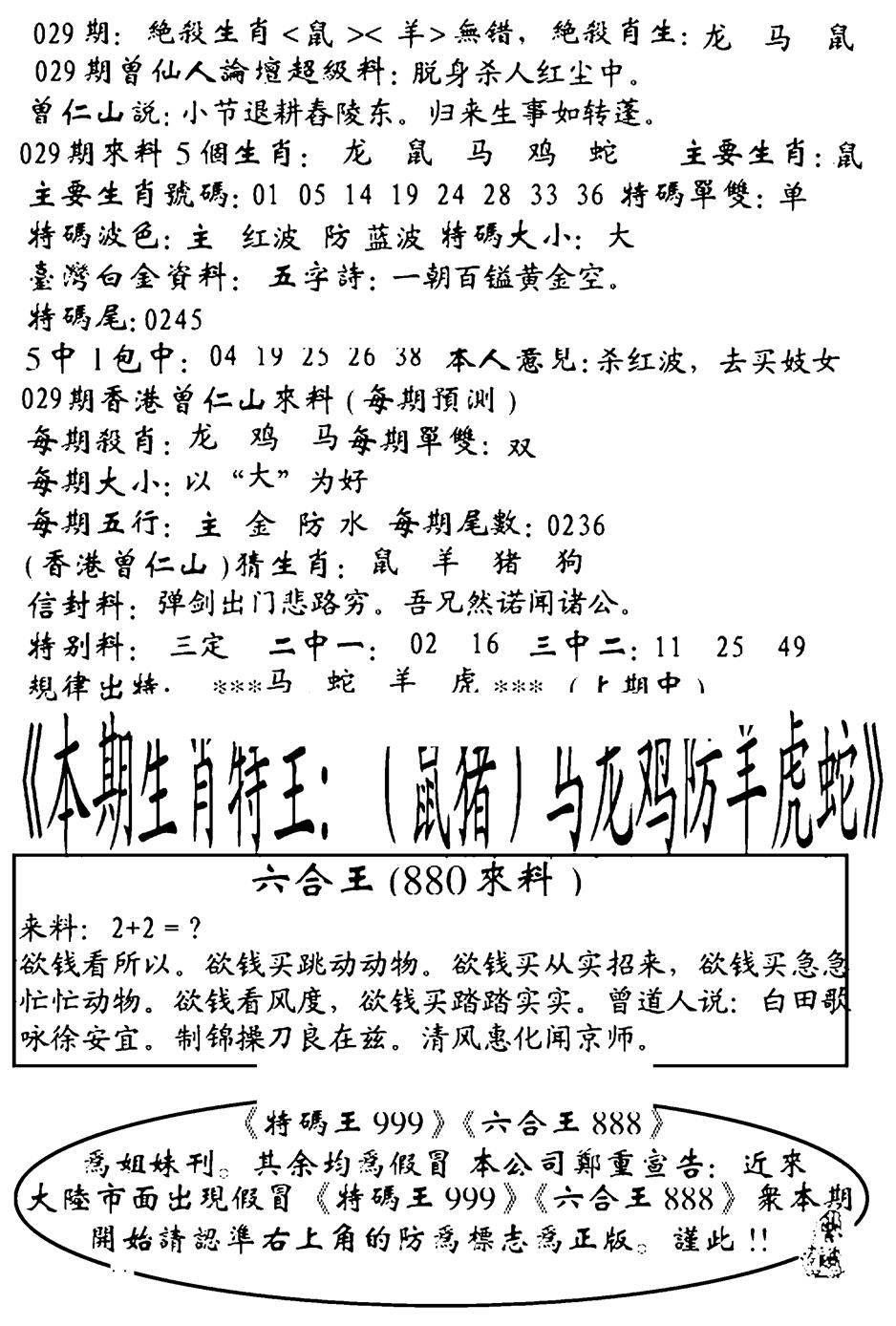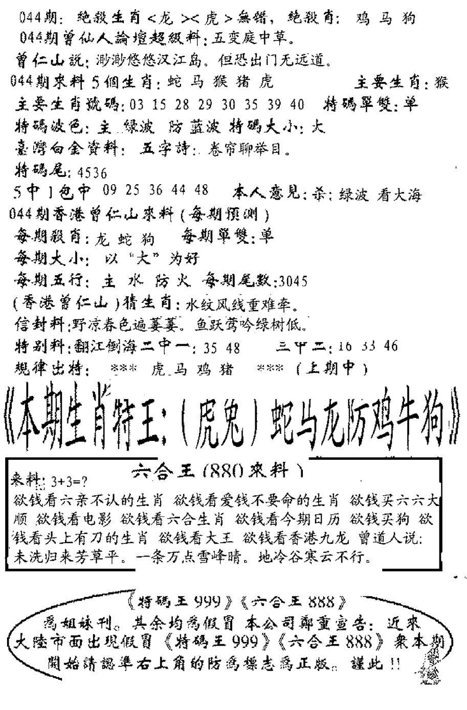 另版六合禅机A