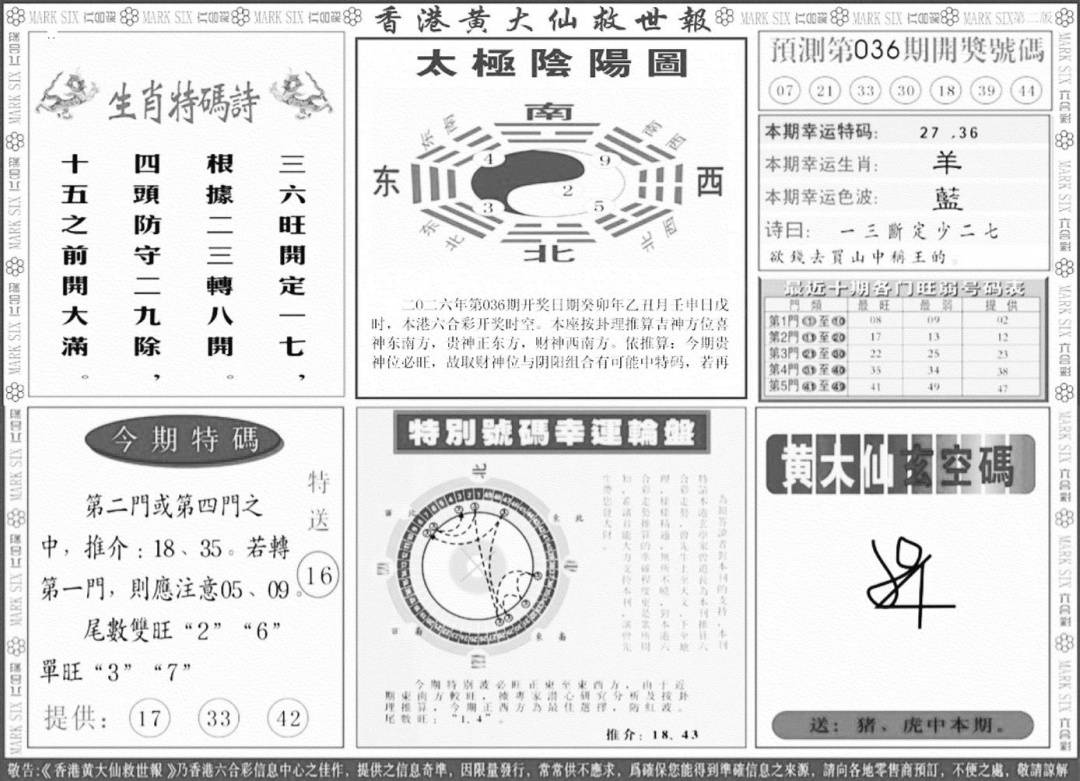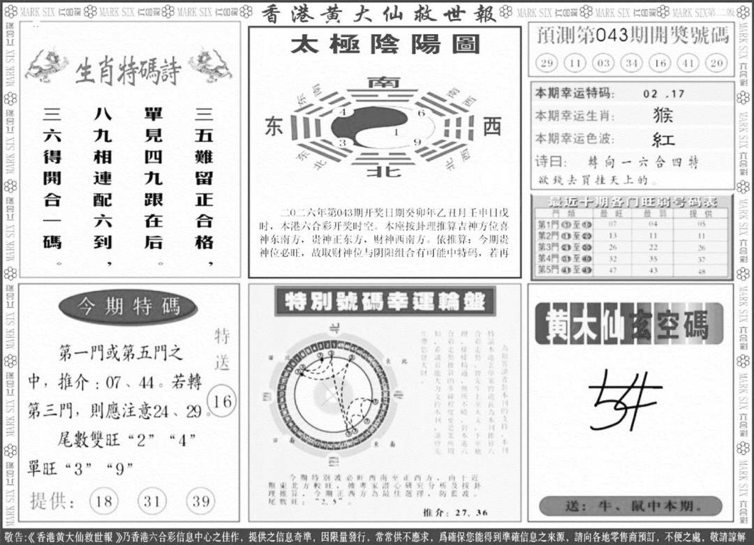 另版黄大仙灵码B