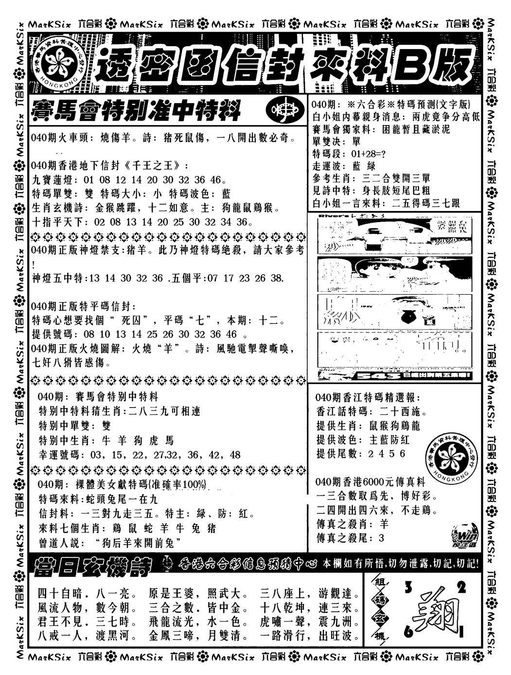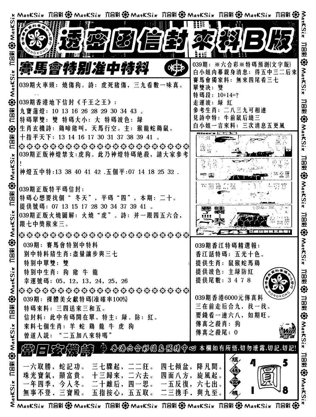 另版濠江神算B