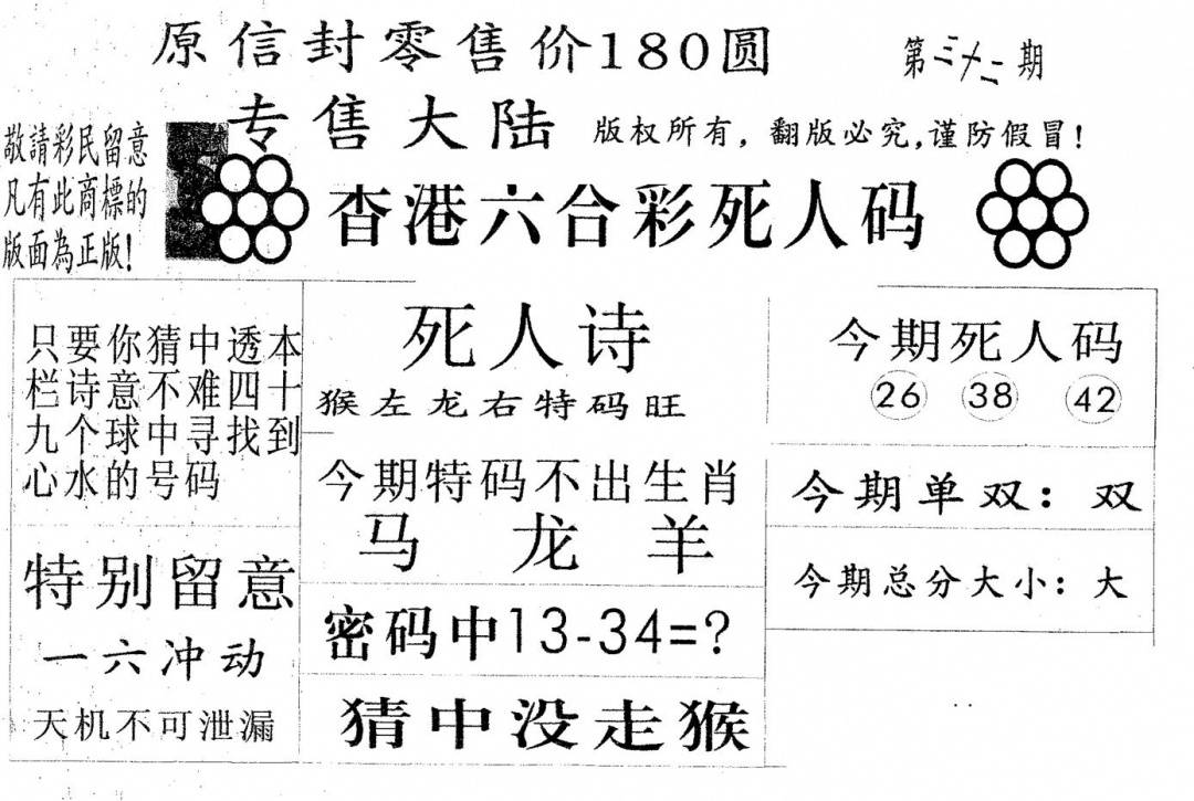 今日抓特码A(正版)