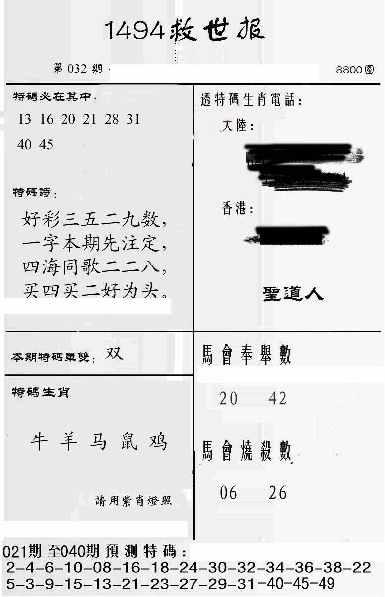 曾道人特码救世报B