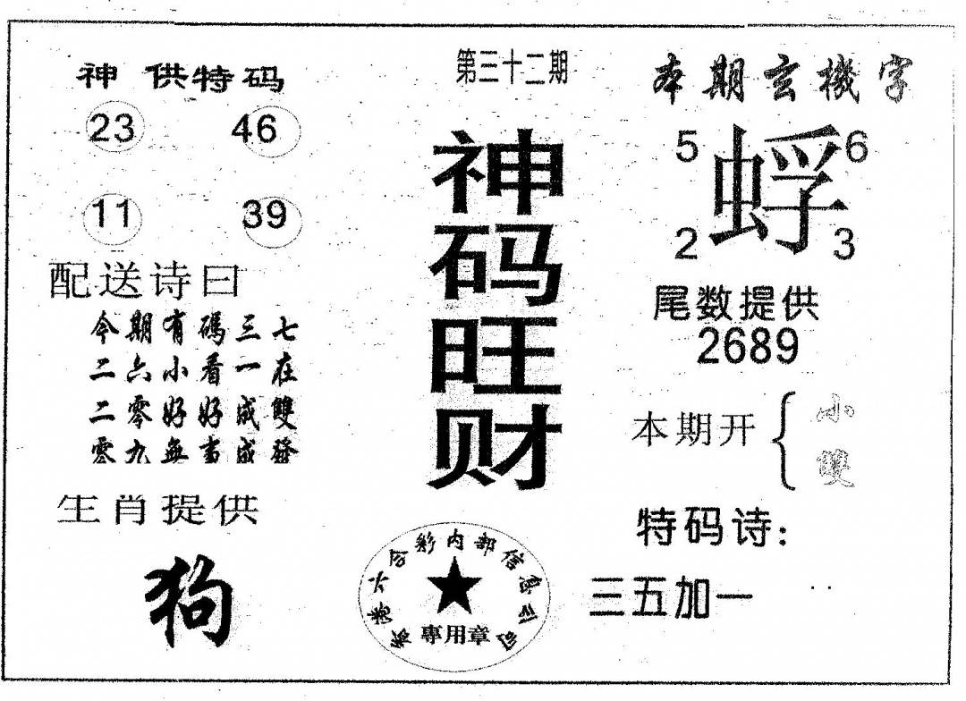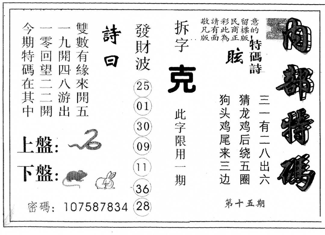另版心水特码(早图)