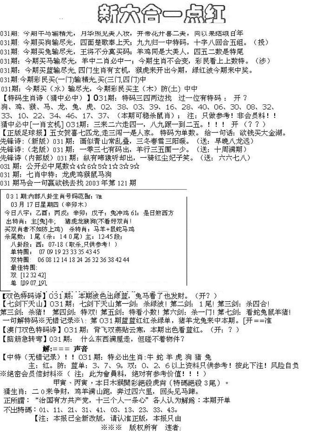 新版内部玄机A