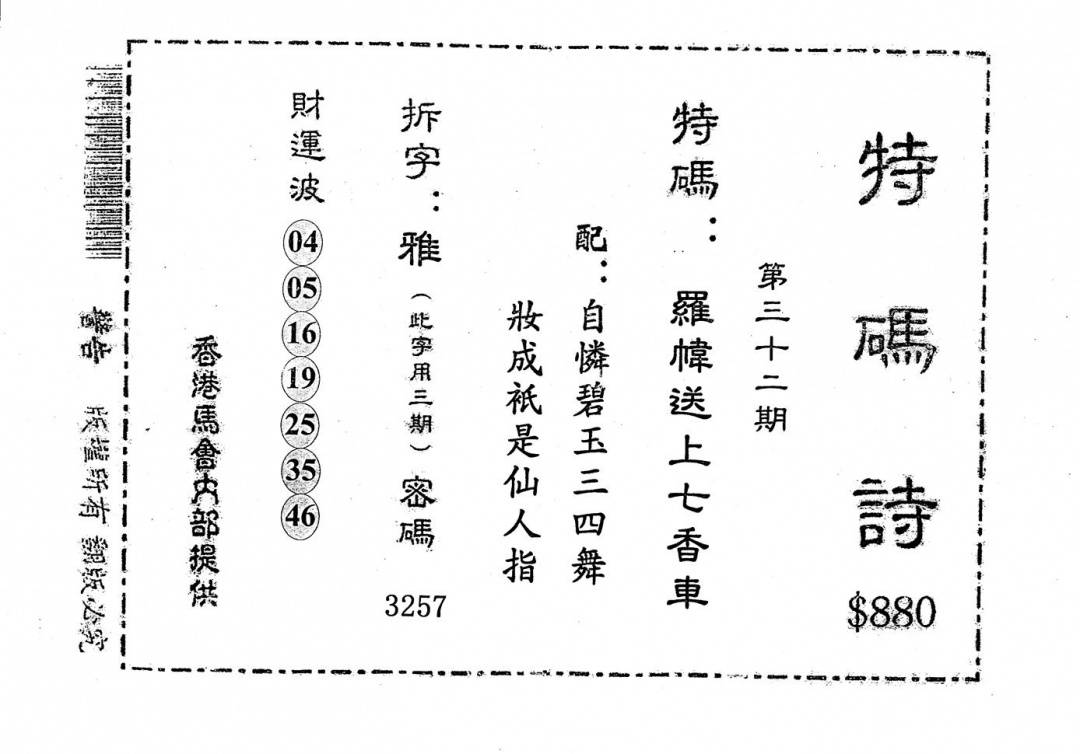 老版880特码诗