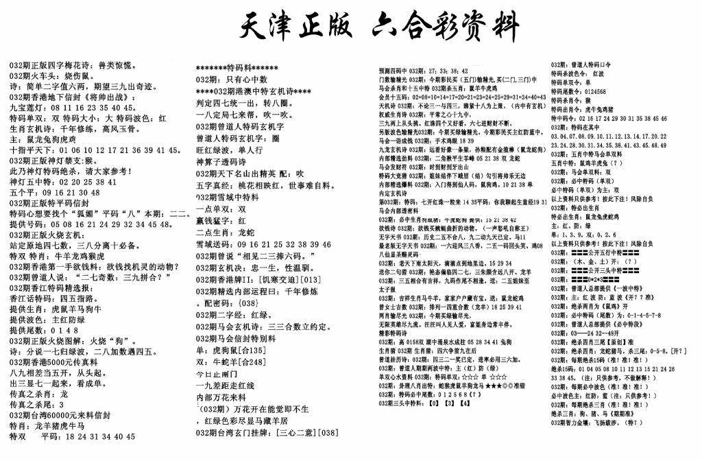 天津正版六合彩资料