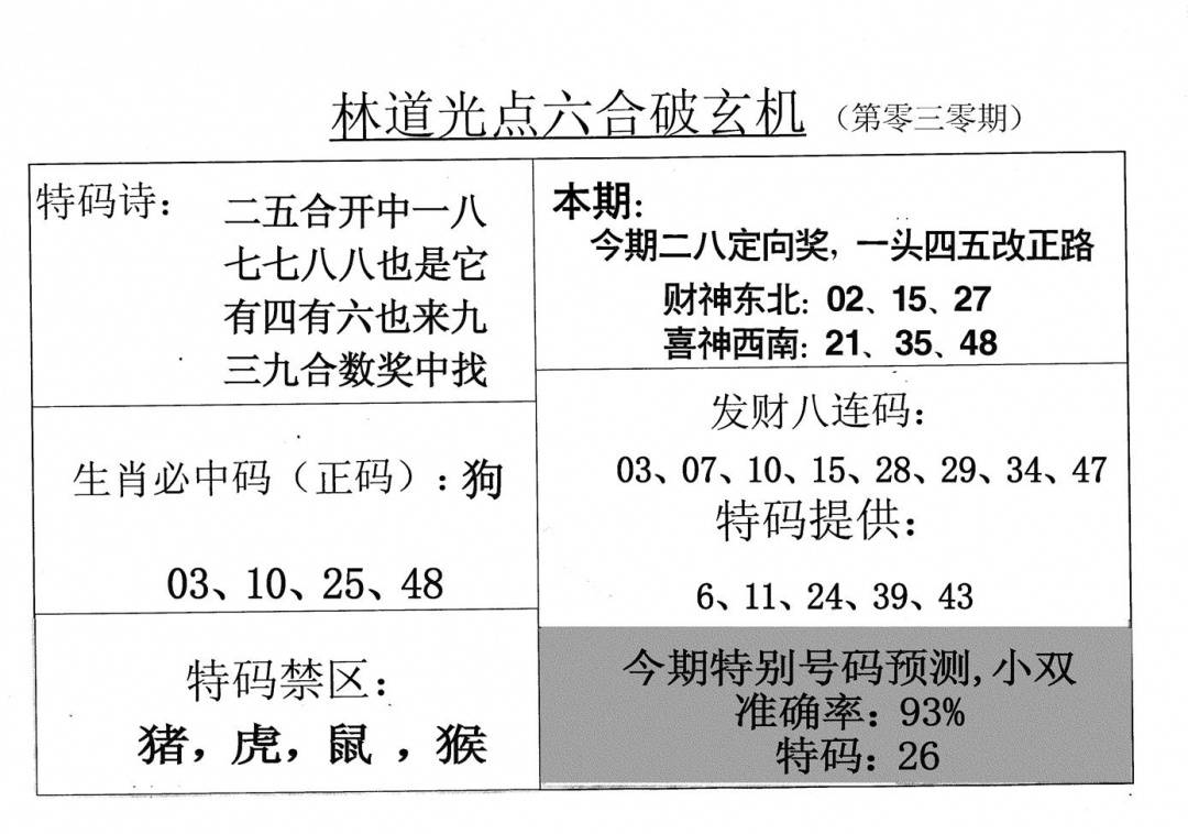 另版黄大仙灵码A