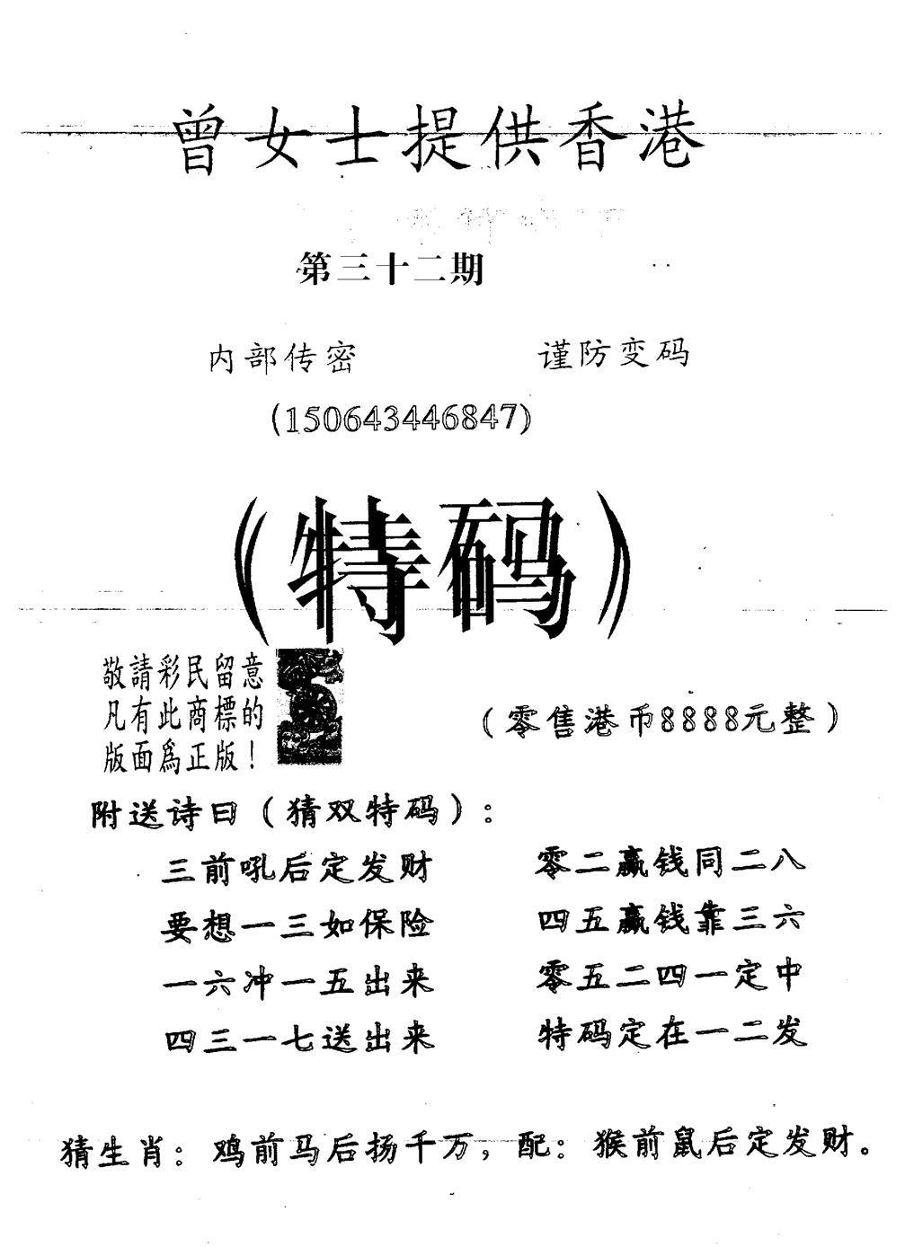 曾女士特码诗